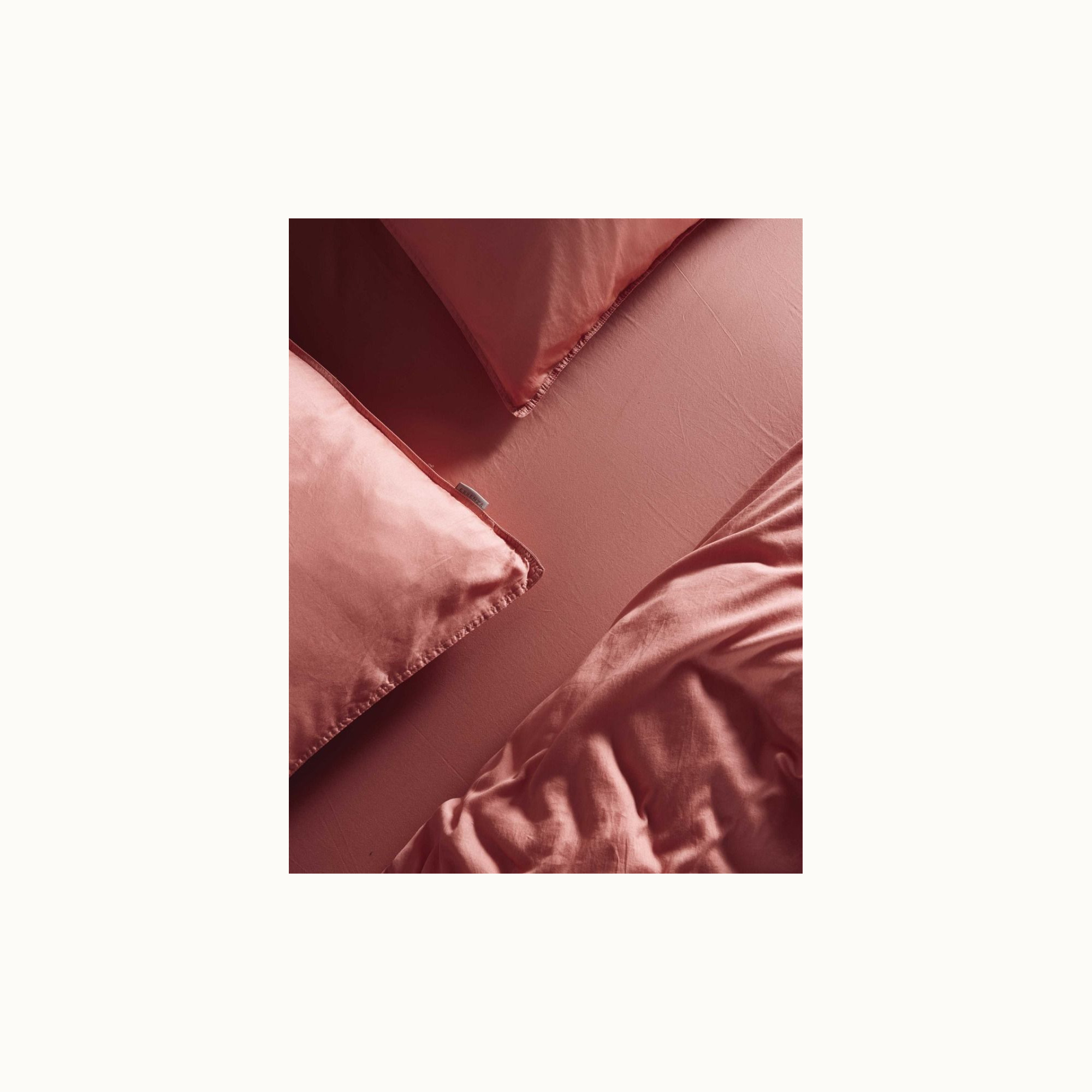 This dusty rose duvet cover brings tranquility and atmosphere to the bedroom. Beautiful colors combined with high-quality fabric will truly amaze you. Thanks to the fine yarns, satin weave, high 300 thread count, and special enzyme wash, the cover gains an elegant sheen and feels exceptionally smooth. A uniquely velvety-soft duvet cover that is long-lasting and timeless.