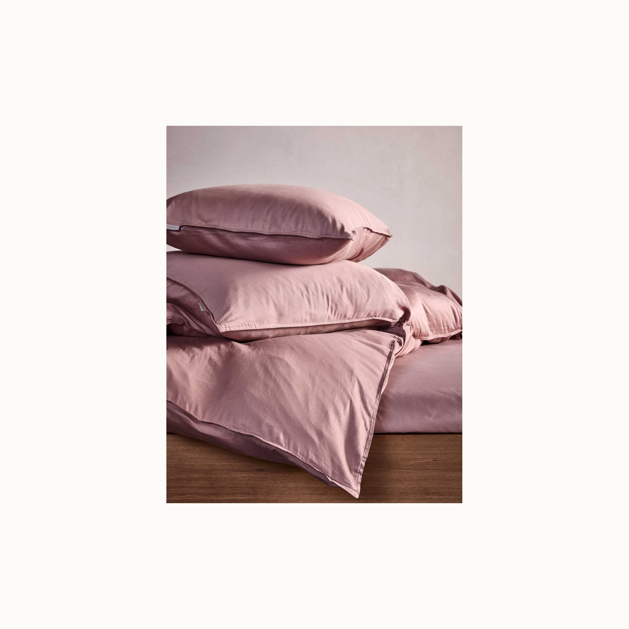 This woodrose duvet cover brings tranquility and atmosphere to the bedroom. Beautiful colors combined with high-quality fabric will truly amaze you. Thanks to the fine yarns, satin weave, high 300 thread count, and special enzyme wash, the cover gains an elegant sheen and feels exceptionally smooth. A uniquely velvety-soft duvet cover that is long-lasting and timeless.