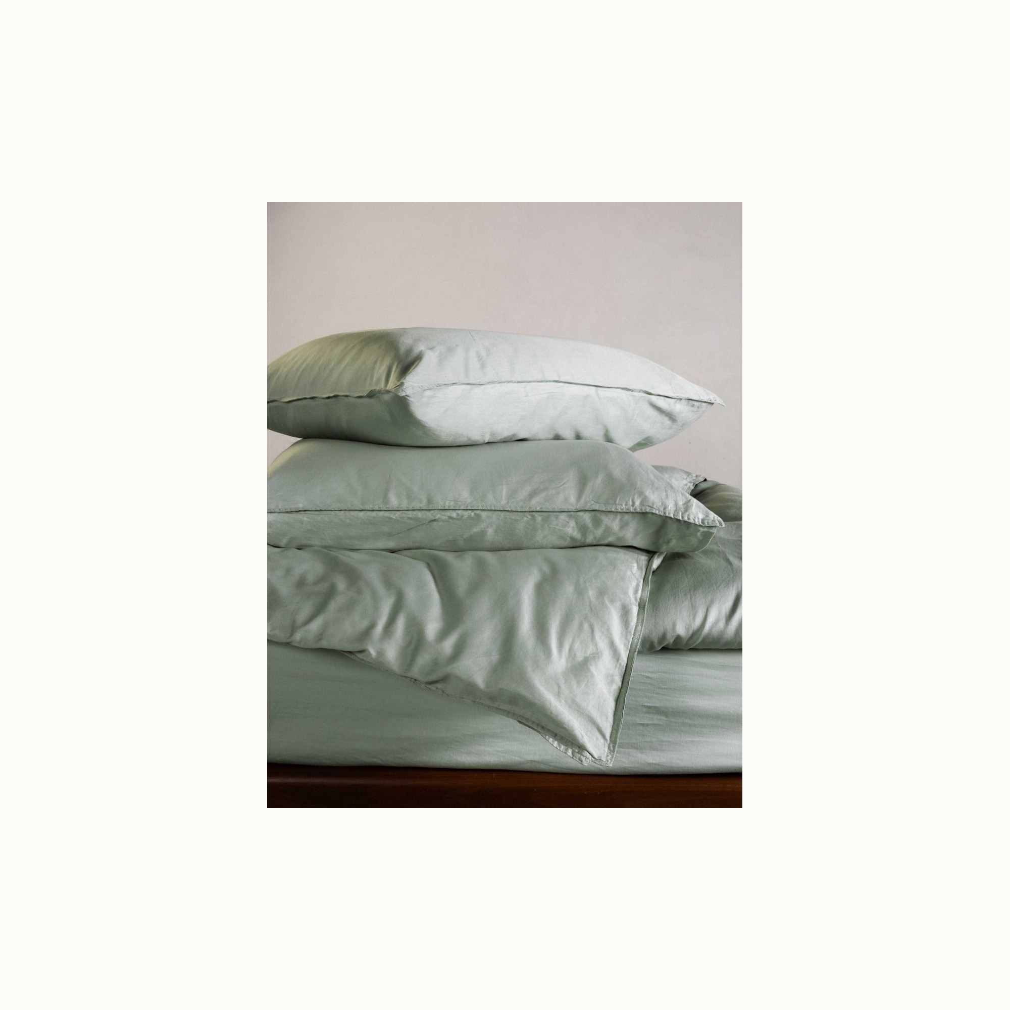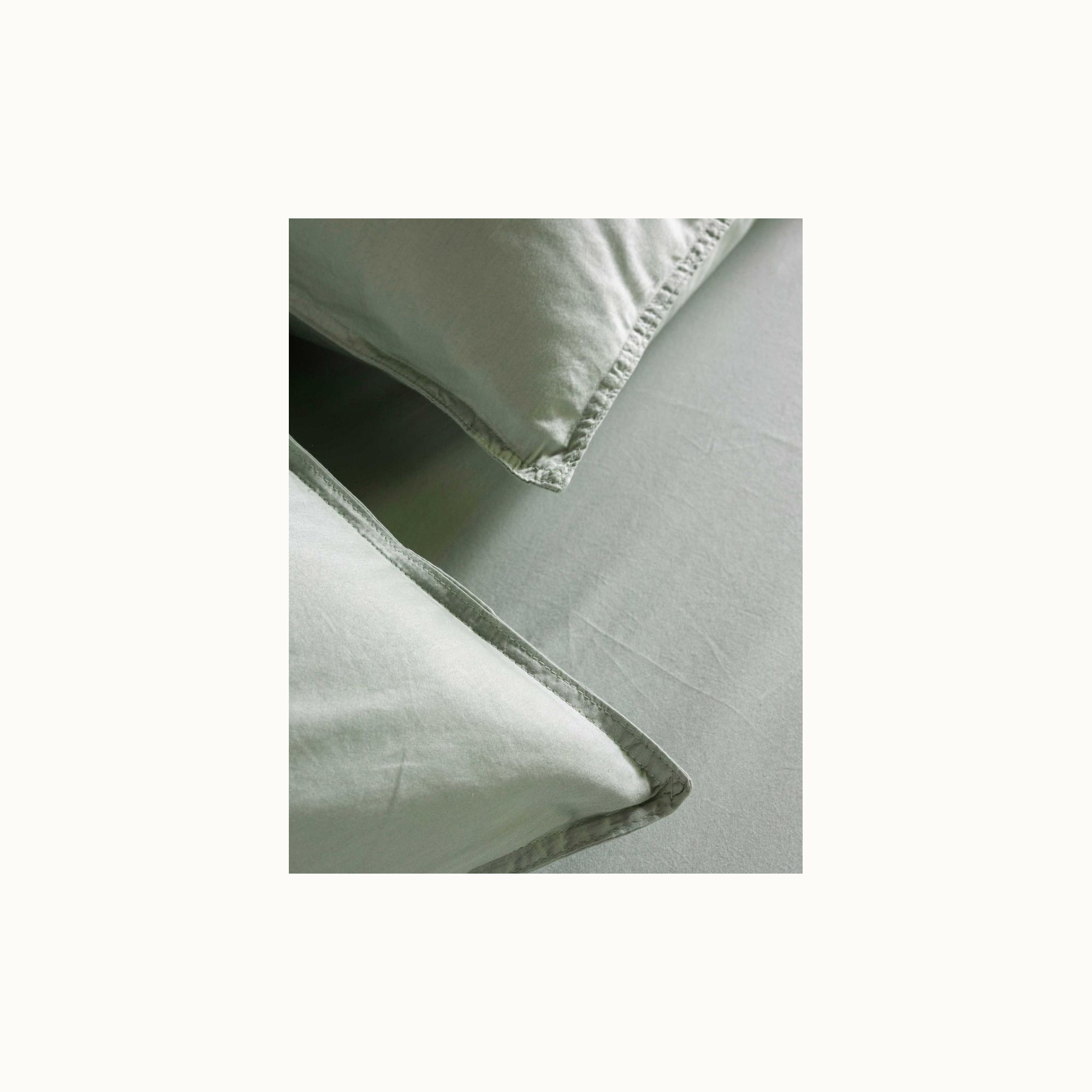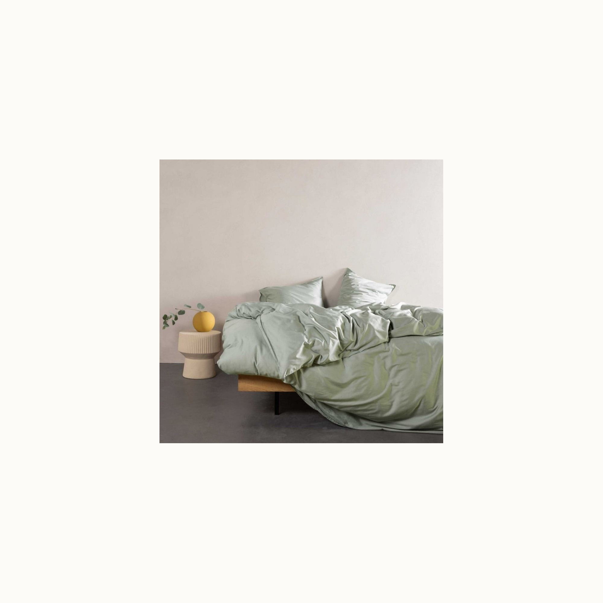 This dusty green duvet cover brings tranquility and atmosphere to the bedroom. Beautiful colors combined with high-quality fabric will truly amaze you. Thanks to the fine yarns, satin weave, high 300 thread count, and special enzyme wash, the cover gains an elegant sheen and feels exceptionally smooth. A uniquely velvety-soft duvet cover that is long-lasting and timeless.