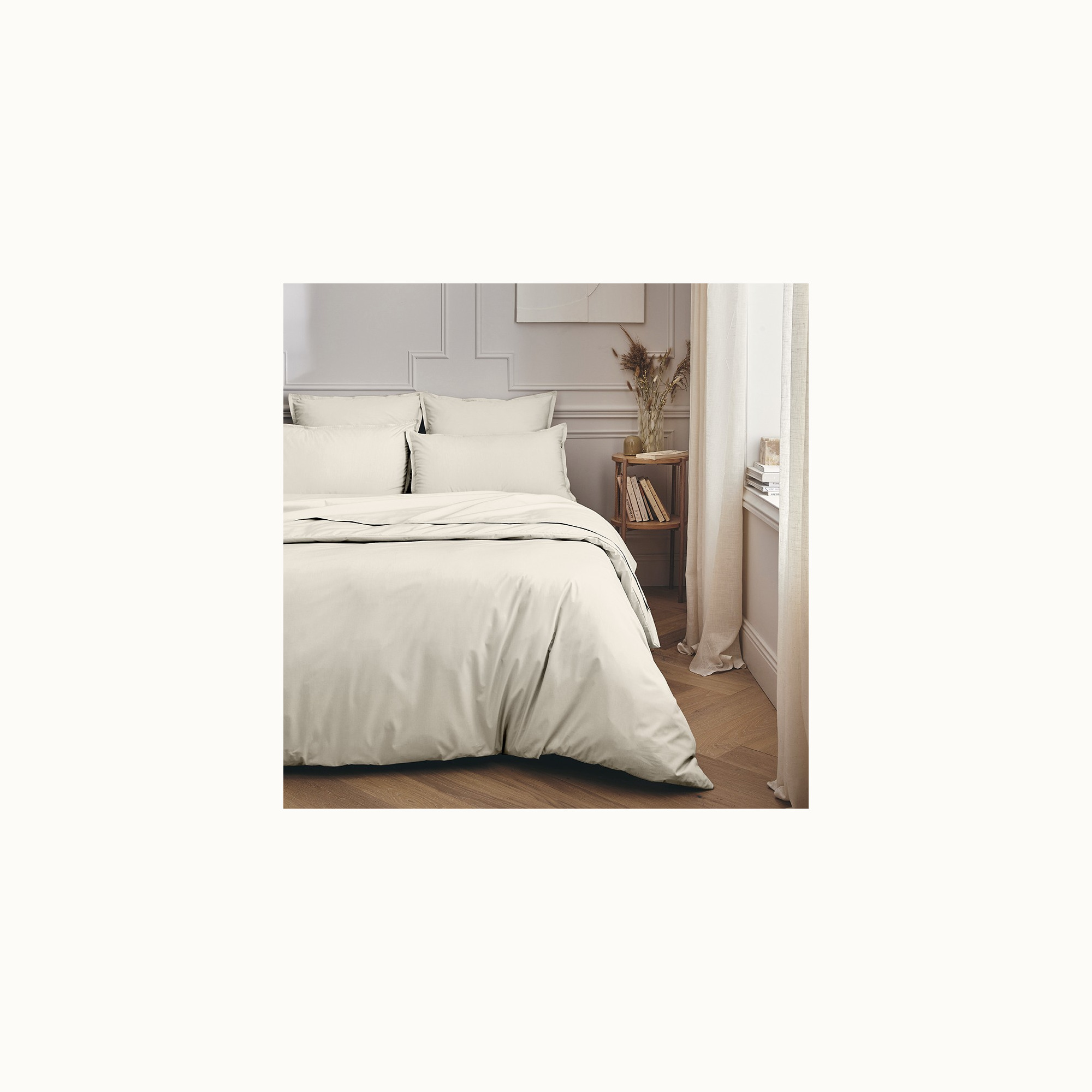 This light neutral percale sheet is woven from 100% combed long-fibre cotton. The fresh, matte and breathable fabric feels soft yet durable, while the subtle flange with double stitching gives the pillowcases an elegant finish. Made in France, with attention to detail and comfort.