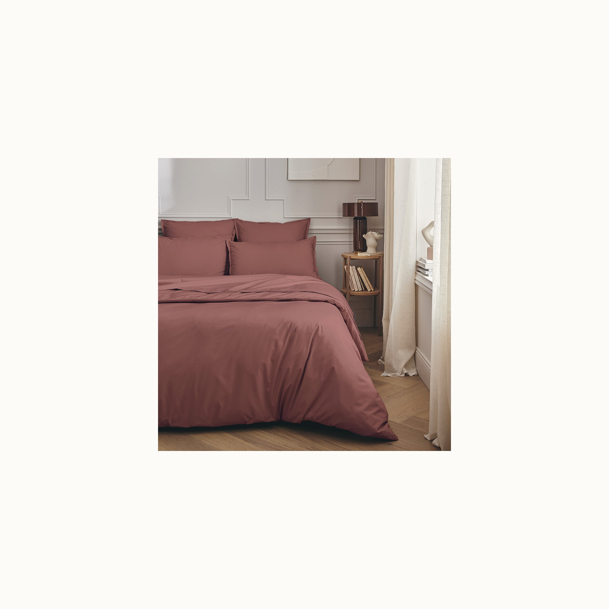 This old rose percale sheet is woven from 100% combed long-fibre cotton. The fresh, matte and breathable fabric feels soft yet durable, while the subtle flange with double stitching gives the pillowcases an elegant finish. Made in France, with attention to detail and comfort.
