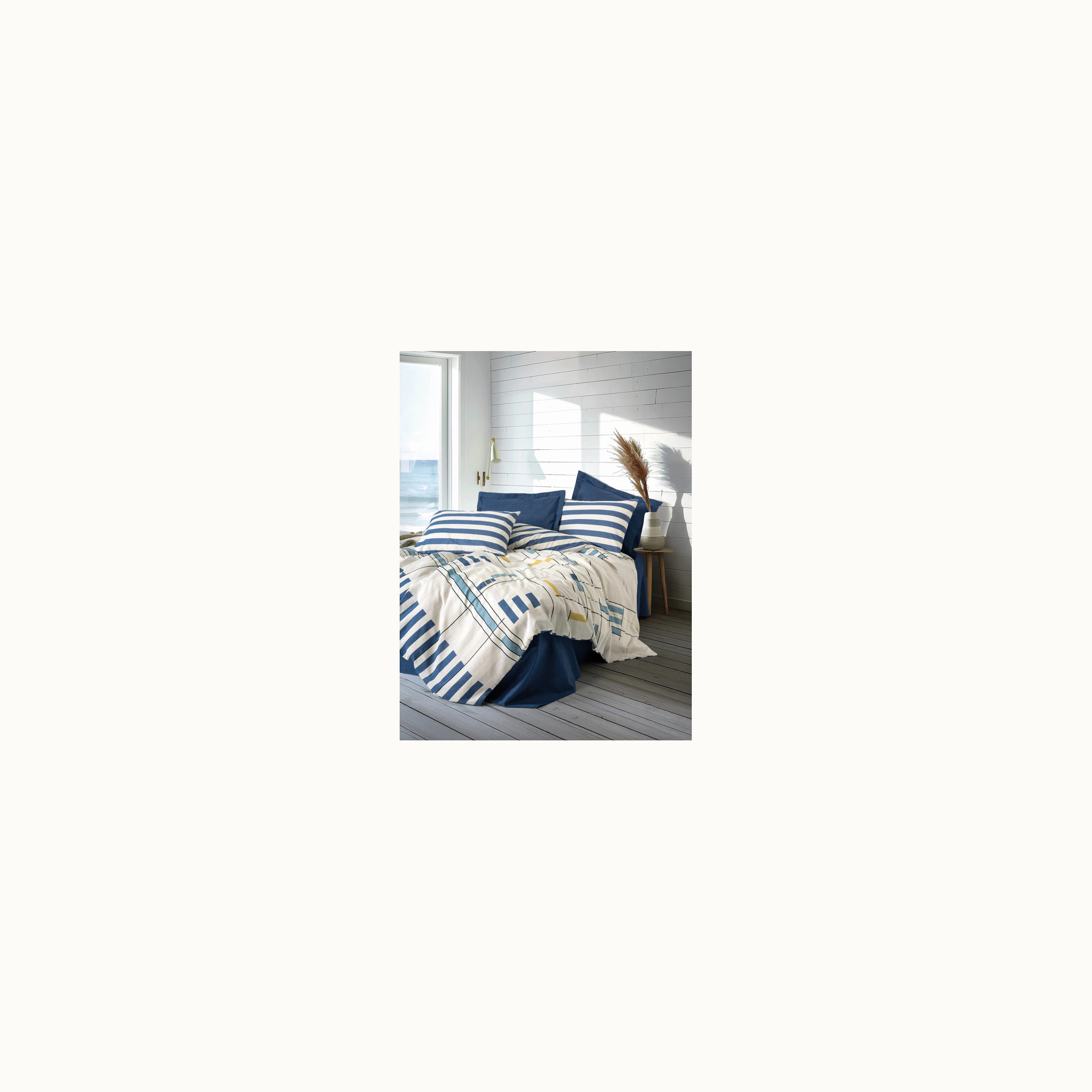 Stijlvol dekbedovertrek met een modern geometrisch patroon in frisse blauwtinten, speels aangevuld met accenten van geel. De fijne weving zorgt voor een zacht, ademend en comfortabel gevoel, ideaal voor een goede nachtrust. Een eigentijdse blikvanger die je slaapkamer direct een frisse uitstraling geeft.
