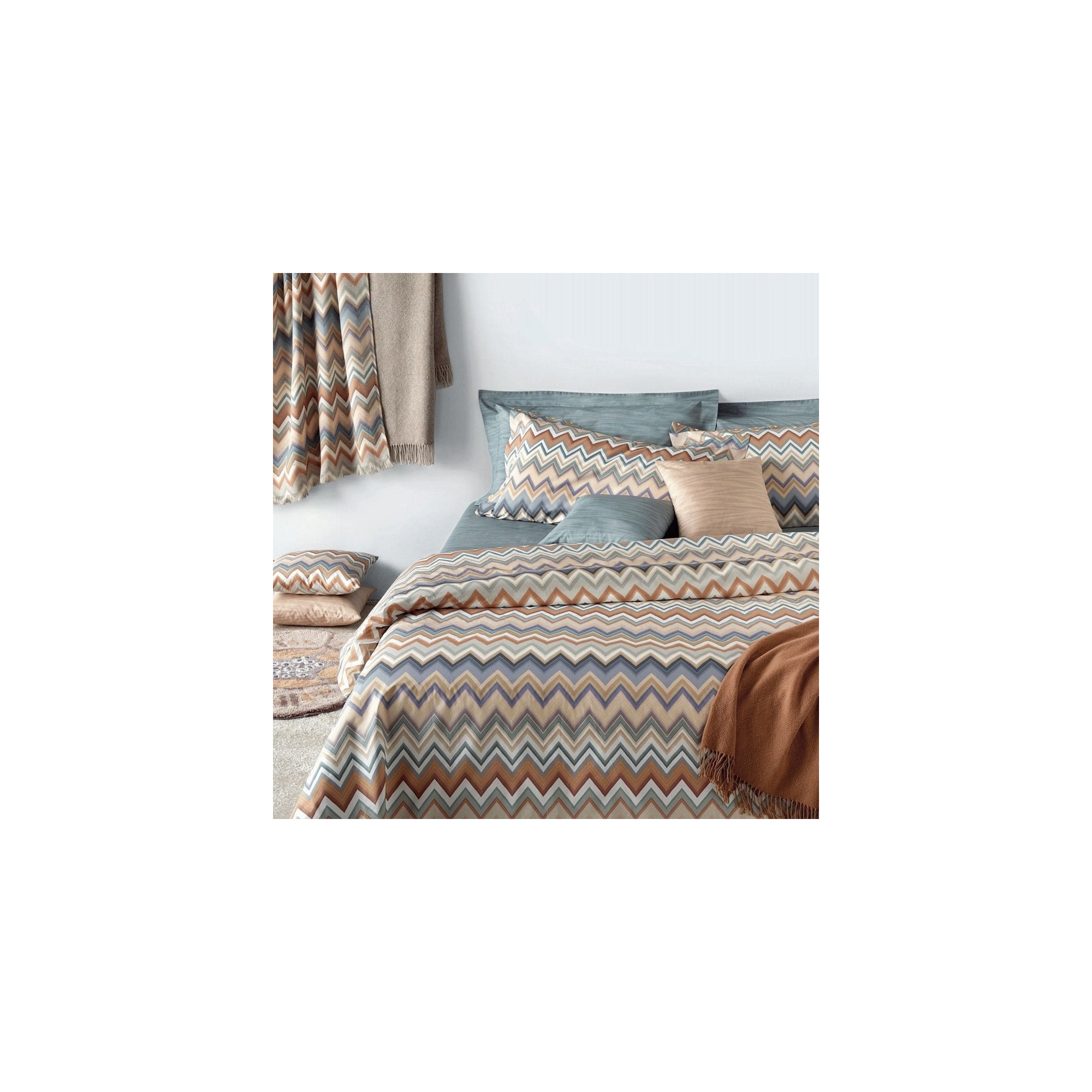 Ervaar de luxe en het comfort van deze Missoni dekbedovertrekset. Het iconische ziggzag patroon heeft een uniek en tijdloos karakter. De harmonieuze kleurschakeringen en het zacht katoen satijn brengen een vleugje Italiaanse klasse in elke slaapkamer.