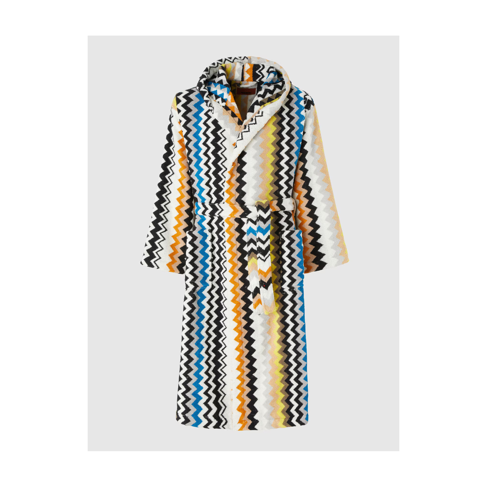 Ervaar de luxe & comfort van uw badjas. Dit iconische zigzagmotief in oranje, blauwe tinten heeft een uniek en tijdloos karakter. Zijn harmonieuze kleurschakering & verfijnde kwaliteit is een must have in huis.