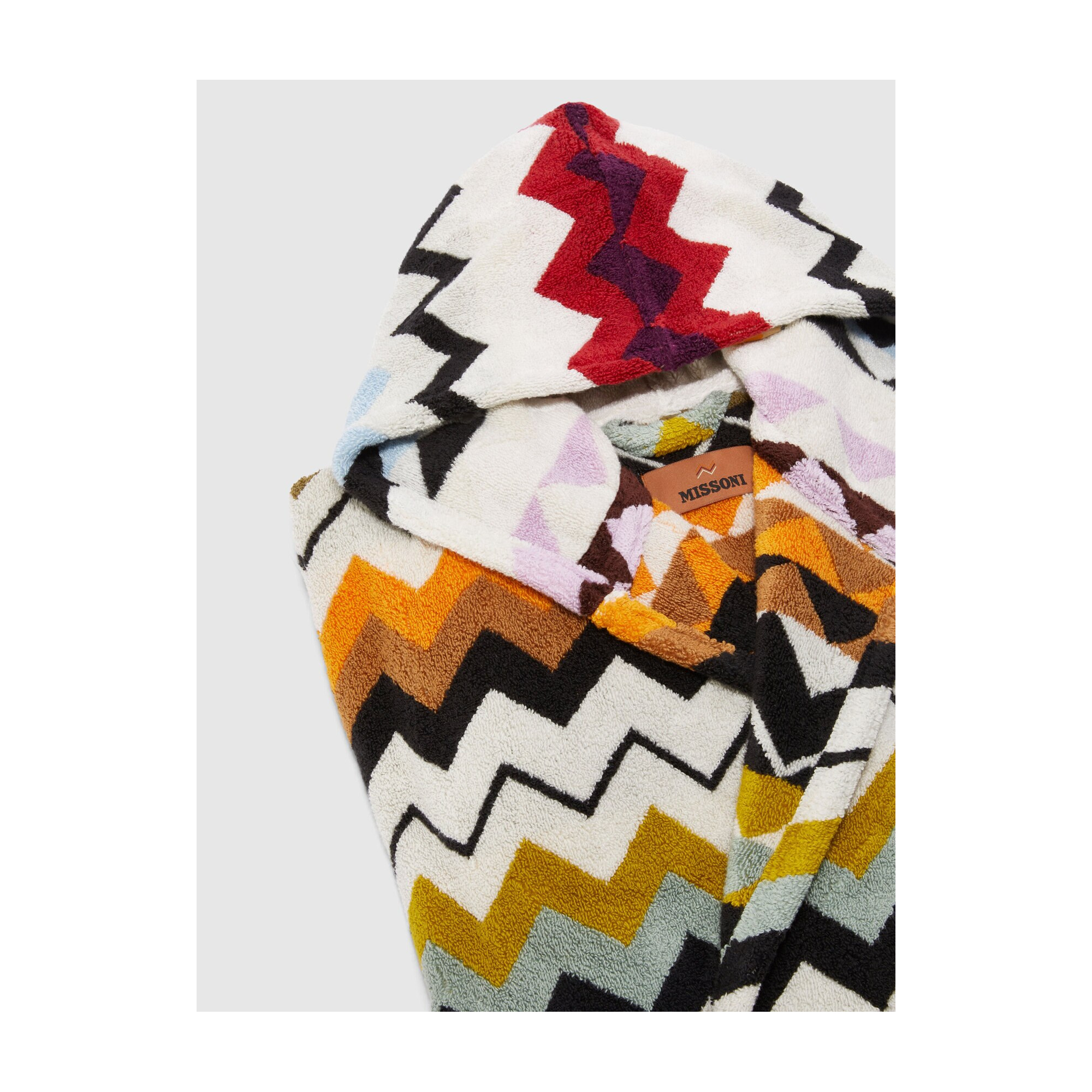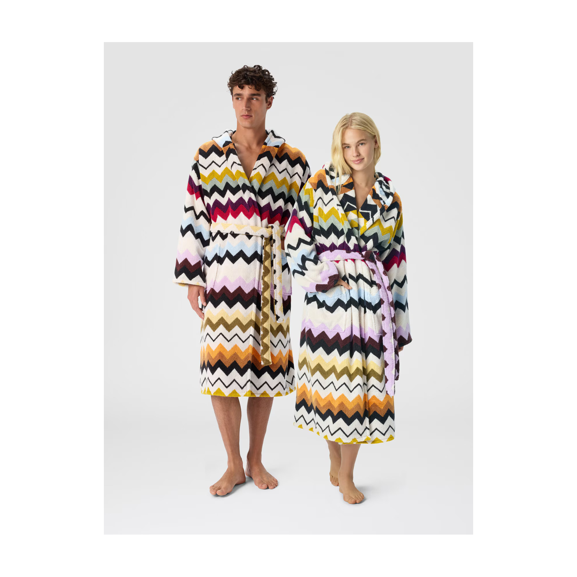 Ervaar de luxe & comfort van uw badjas. Dit iconische zigzagmotief heeft een uniek en tijdloos karakter. Zijn harmonieuze kleurschakering & ultra zachte kwaliteit is een must have in huis.