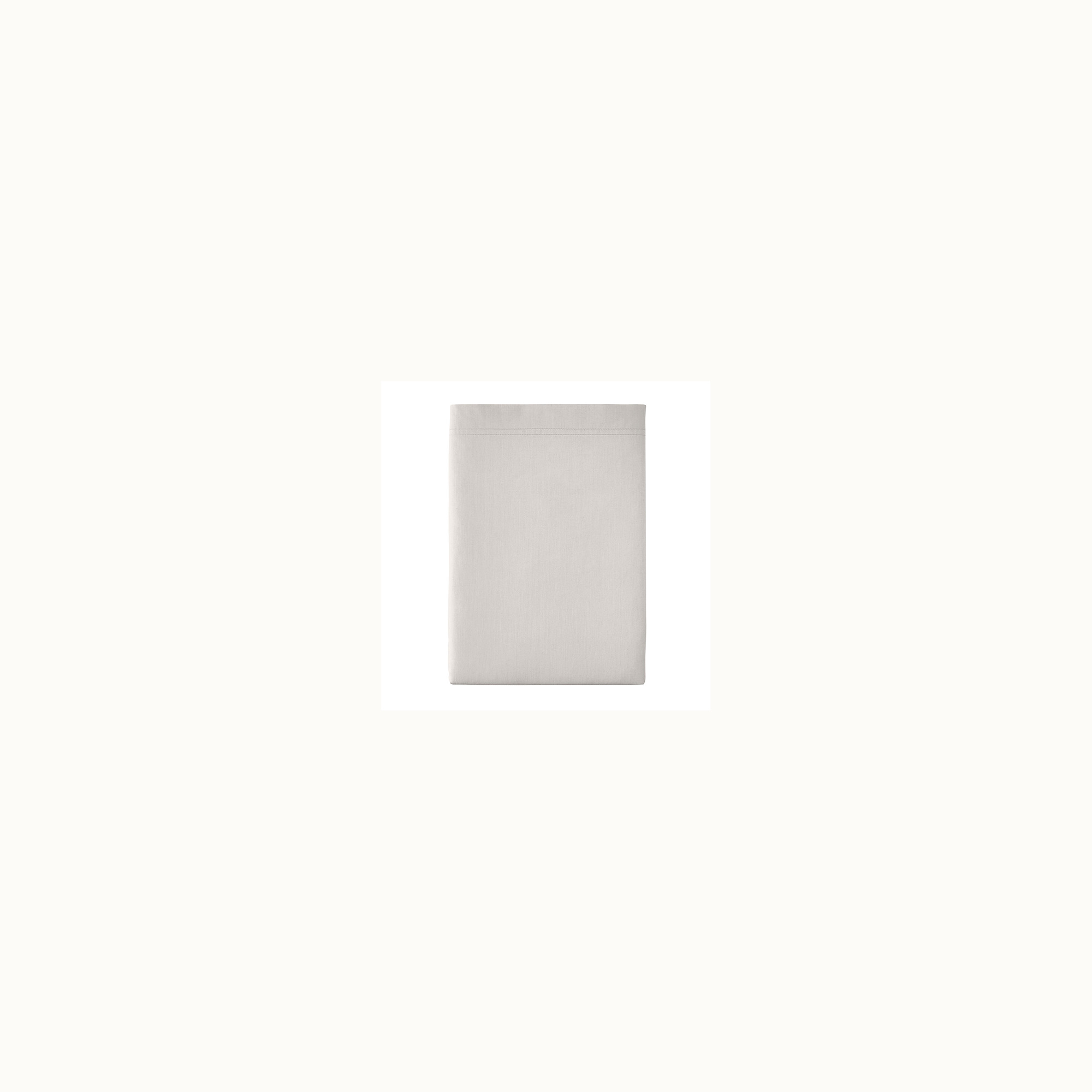 Dit licht grijs percale laken is geweven uit 100% gekamd katoen met lange vezels. Het frisse, matte en ademende materiaal voelt zacht en duurzaam aan, terwijl de subtiele volant met dubbele stiksels de kussenslopen een elegante afwerking geeft. Gemaakt in Frankrijk, met oog voor detail en comfort.
