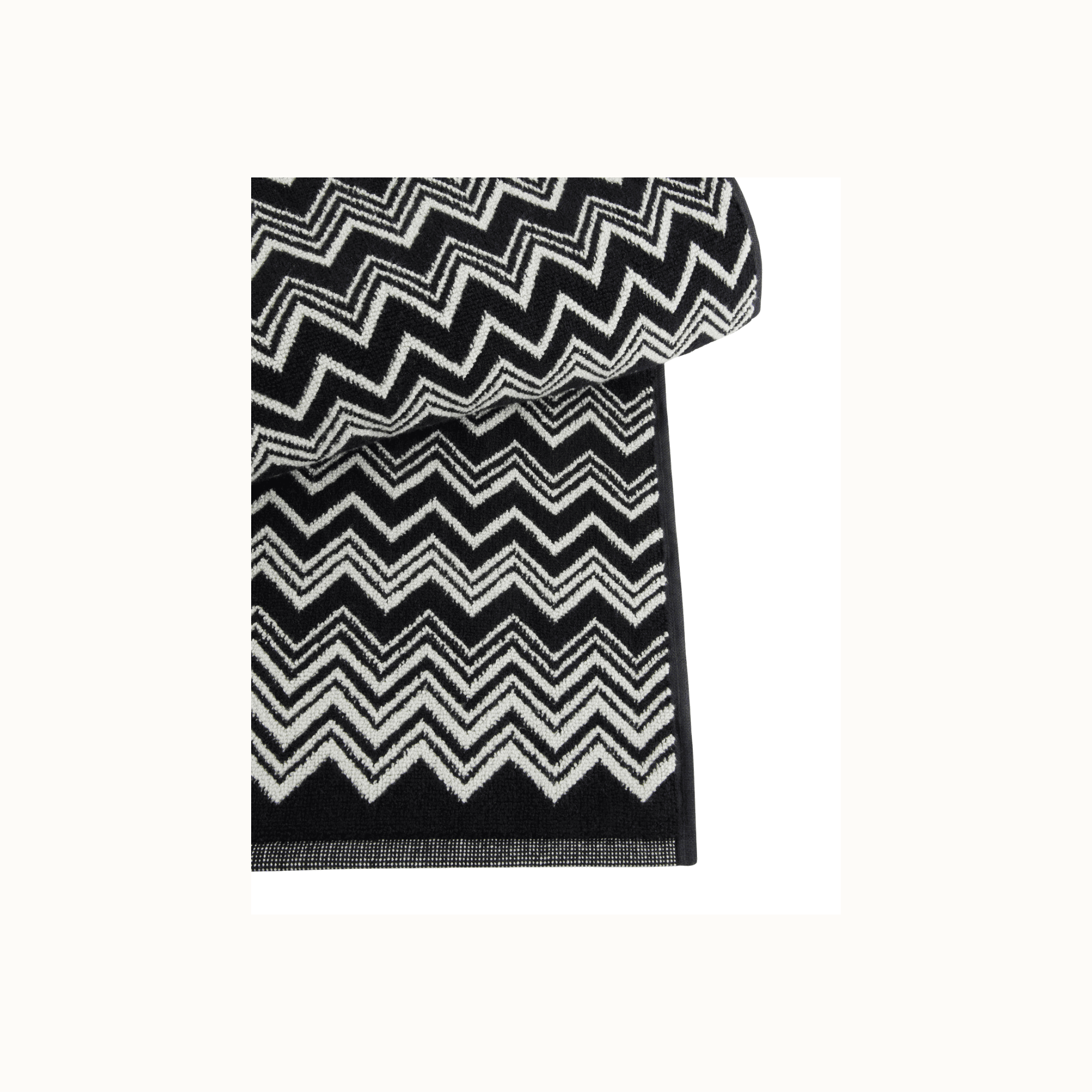 Ervaar de luxe & comfort van deze Missoni-badmat. Dit iconische patroon in een strakke zwart-wit schakering en verfijnde kwaliteit is een must have in elke badkamer.