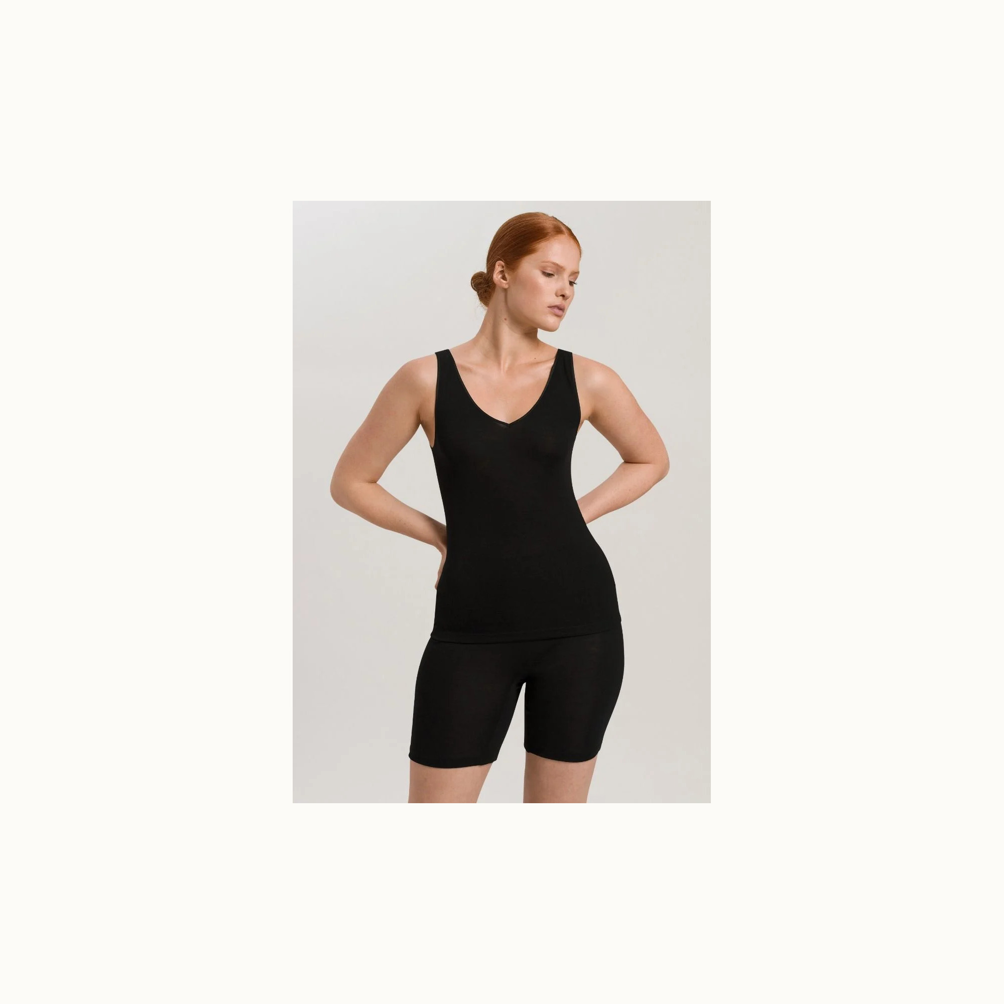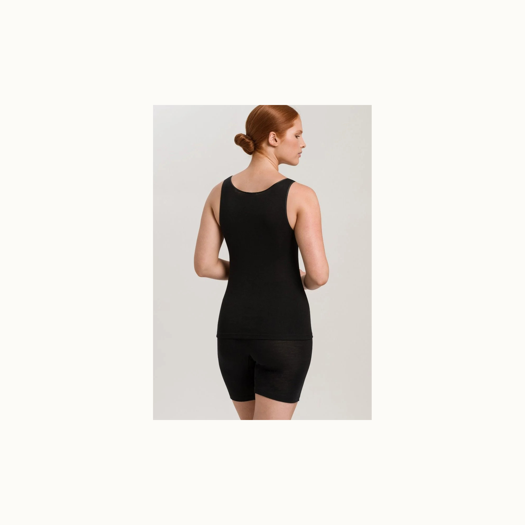 HanroTank top zwart wol & zijde