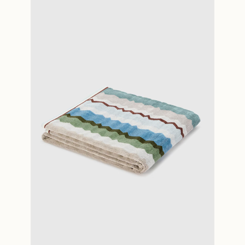 Een luxueuze badmat die zachtheid en de onweerstaanbare elegantie van Missoni weerspiegelt. Deze badmat van zachte katoenen badstof verenigt comfort en stijl. Zijn iconische zigzagmotief & verfijnde kwaliteit is een must have in elke badkamer.
